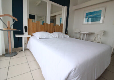 Immerse yourself in an exceptional stay with our bright double room, decorated with a balcony offering a breathtaking view of the ocean, for unforgettable moments of relaxation.