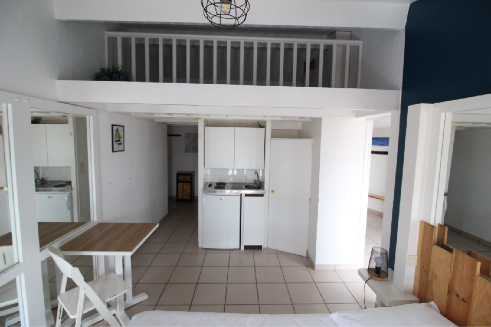 • Bed Type: 1 160 cm bed and 2 90 cm beds on a low mezzanine under the ceiling