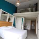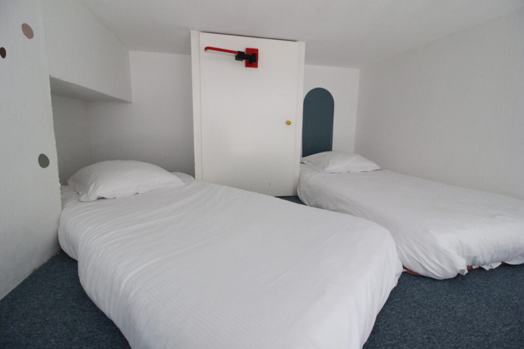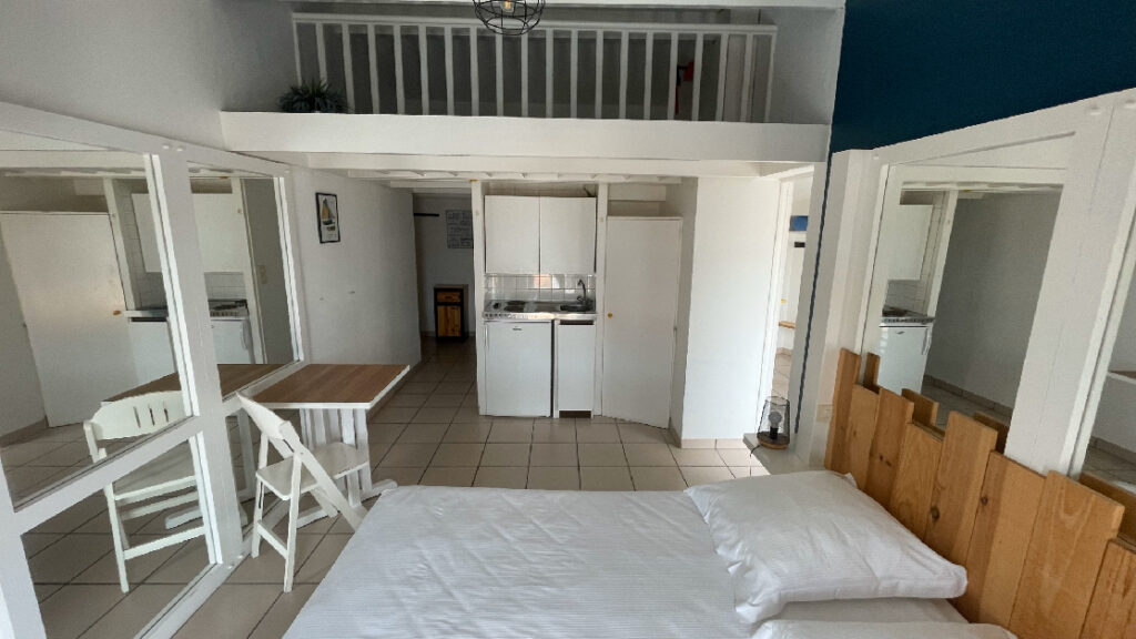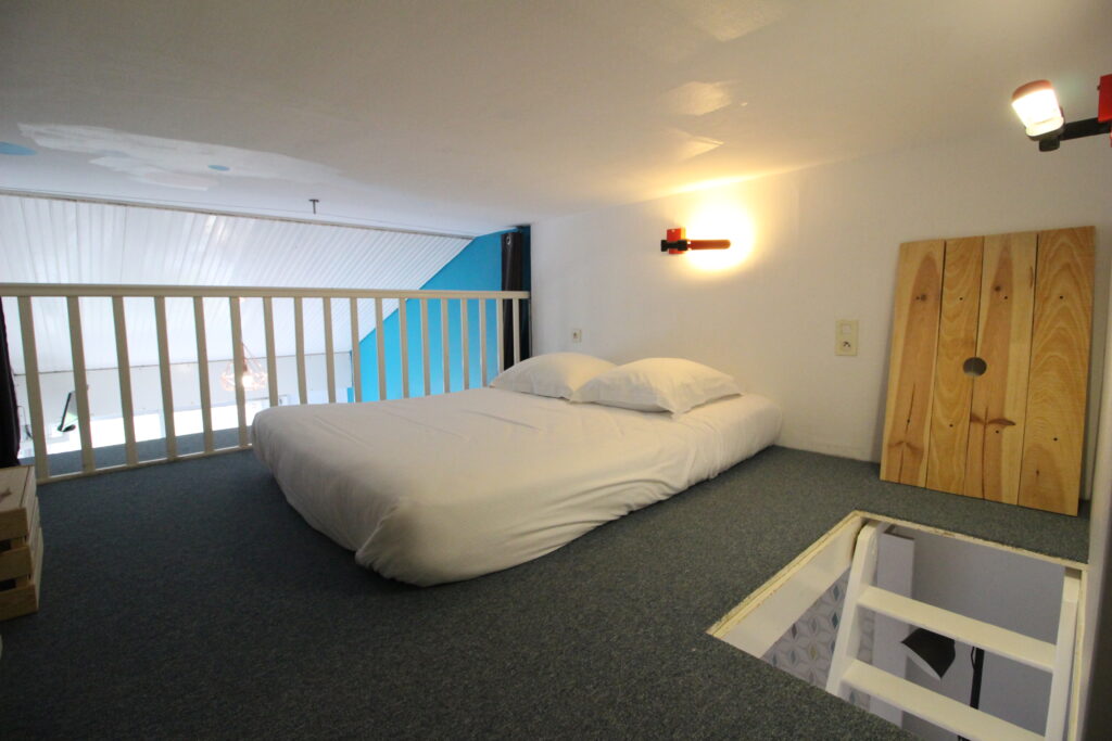 • Bed Type: 1 160 cm bed and 2 90 cm beds on a low mezzanine under the ceiling