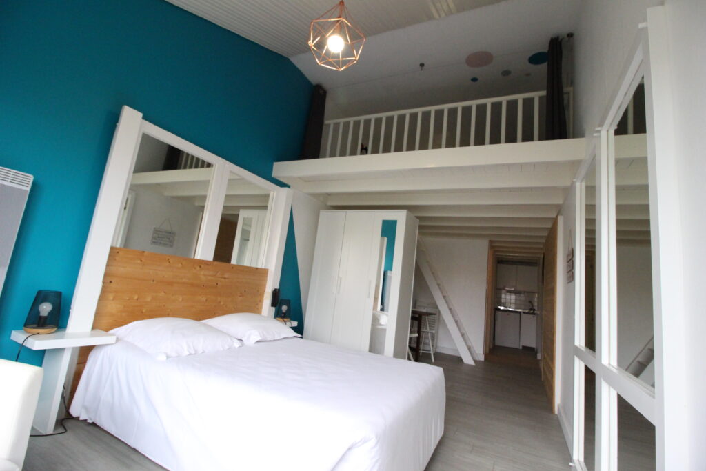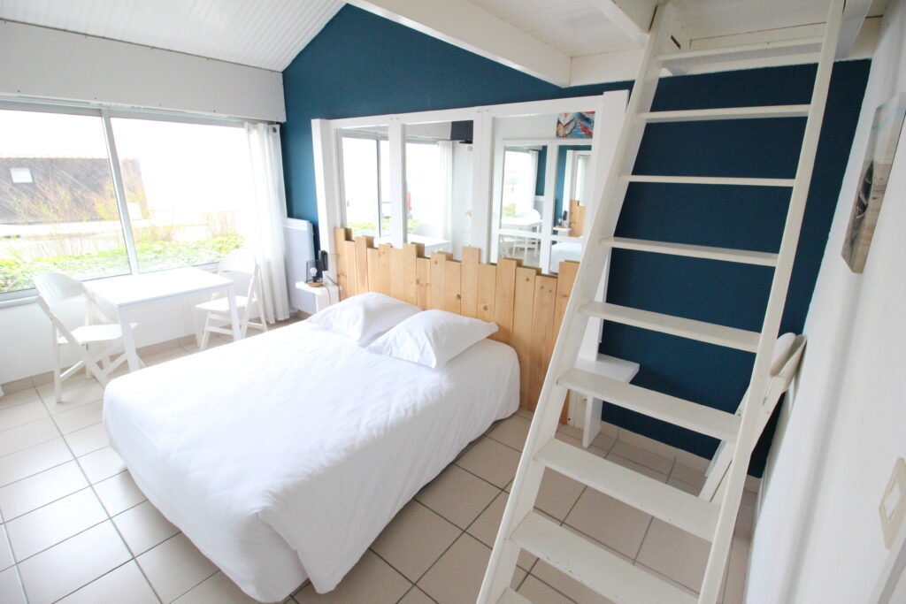 • Bed Type: 1 140 cm bed including a low mezzanine under the ceiling 1 90 cm bed | 1 90 cm bed (separate space)